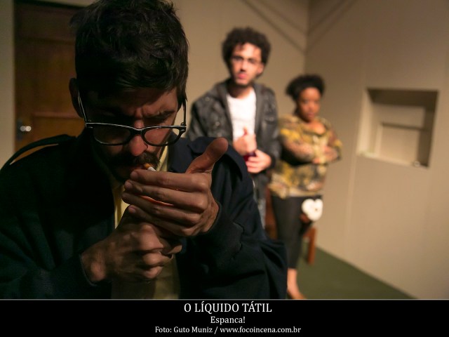 Com “O Líquido Tátil”, o Espanca! retoma as pequenas narrativas familiares atravessadas por elementos absurdos, como eram “Por Elise” e “Amores Surdos”, os espetáculos que marcaram o início e a ascensão do grupo. Entretanto, se emparelha com as montagens seguintes pela ambição de travar encontros. “No ‘Congresso Internacional do Medo’, tínhamos mais convidados do que atores do grupo. O ‘Marcha para Zenturo’ foi criado com outro grupo (o XIX de Teatro). Isso culmina com a parceria com um artista de outro país. Quando alguém se agrega, modifica o trabalho e nos obriga a criar novas dinâmicas de criação coletiva”, diz Grace.