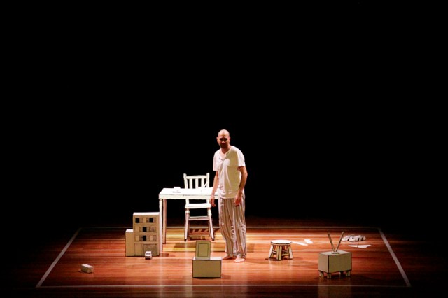 O texto reescrito por D’Angelli com base num conto de David Foster Wallace também concretiza esse desconforto com o papel social esperado do adulto por meio da narrativa dos percalços de se morar sozinho, acentuando detalhes que sintetizam os afetos envolvidos. D’Angelli assume essa função de narrador e manipulador do boneco com uma capacidade de interiorização intensificadora do mal-estar do personagem. A emissão de voz baixa, contudo, pode limitar a audição do público.