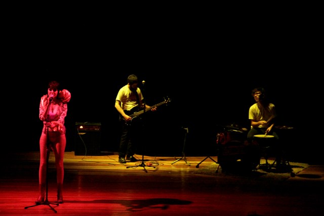 O que chega – ao menos pela minha experiência de expectação – é a intenção transgressora associada ao rock, ao figurino que expõe a seminudez da atriz e ao discurso que enfrenta o pai e celebra o embriagar-se. Mais intenção do que transgressão real, uma vez que a zona de conforto dos performes e dos espectadores não é ameaçada. Ou, quando é, com a revelação involuntária do seio da atriz, rapidamente se apazigua num gesto de cobrir o corpo, consciente ou não.