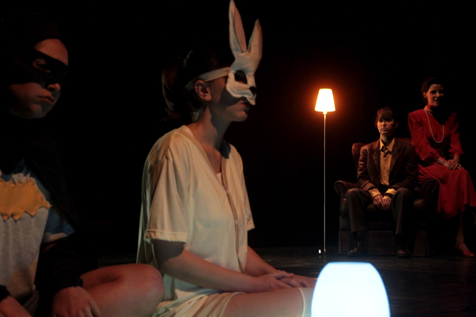 Ainda presente, o caráter fantasmagórico se insinua nessa obra de modo mais sutil. O diretor Diego Fortes o concretiza erigindo a cena como um quadro figurativo, expressionista, e criando uma analogia entre a tela de um animal de caça, isolada ao fundo do palco, e os seres que habitam o espaço cênico.