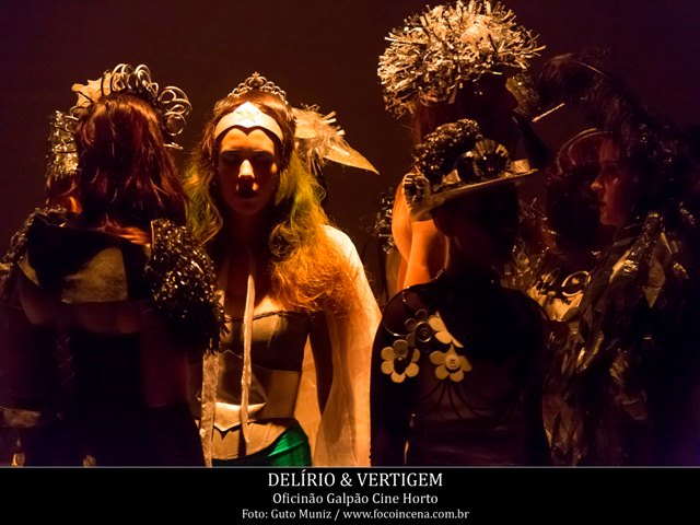 Delírio & Vertigem, 15ª edição do projeto Oficinão Galpão Cine Horto apresenta dois espetáculos que somam 2h30 de duração, o que, de imediato, parece exigir disposição e causa certa hesitação a quem decide assistir. Não que espetáculos não devam durar mais que 1h ou 1h30 (ainda que a era virtual tenha nos deixado mais preguiçosos e impacientes a longos formatos), mas principalmente, ao levarmos em conta as particularidades de um projeto como o Oficinão. Todo ano, cerca de vinte atores com experiências e formações diversas são selecionados para vivenciar um processo de criação com um diretor escolhido pelo Galpão Cine Horto. Este diretor é responsável pela proposta do espetáculo e por sua condução ao longo do ano. No caso de 2012, a artista convidada foi Rita Clemente, atriz e diretora de reconhecida trajetória dentro e fora de Minas Gerais. A ela coube administrar os desejos, as ambições e as alteridades de dezessete atores (treze permaneceram até a estreia) na tentativa de compor uma obra com o mínimo de unidade estética e discursiva – tarefa complicada para qualquer diretor, considerando o número de profissionais envolvidos, o curto prazo e o fato do Oficinão ser esperado pelo público mais como um espetáculo profissional do que como uma pesquisa ou exercício artístico, como ocorre com os trabalhos de conclusão dos cursos profissionalizantes da cidade. Diante destes e de outros dificultadores, é sempre possível que os espetáculos do Oficinão frustrem público e atores participantes, alimentados pela grande expectativa em torno do projeto e por uma imagem construída ao longo de seus quinze anos.