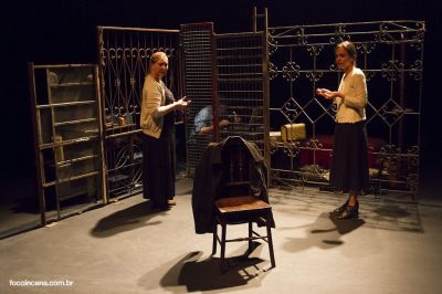 Essa questão da identidade sustentada ao longo do tempo de uma existência se evidencia na duplicação da personagem em duas atrizes de idades distintas, confinadas num mesmo espaço onde suas palavras se sobrepõem, coincidem e se completam. Como escrevi quando a obra ainda se tratava de uma cena curta, daí se intui que aqueles abalos do passado não a abandonam em nenhuma etapa da vida, são sempre um filtro em sua relação com as pessoas e coisas ao redor; e noções como futuro e passado perdem a sua clareza. De alguma maneira, aquela mulher ficou presa ao evento da infância, como sugerem as grades do cenário.