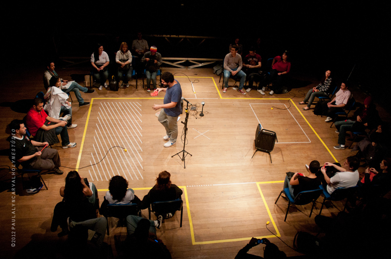 Façamos um salto ainda mais brusco da Europa para o Brasil, mais especificamente para Recife, para um ator recifense chamado Giordano Castro, integrante do Grupo Magiluth, que se apresentou entre os dias 14 e 17 de março de 2013 em Belo Horizonte e trouxe os espetáculos “Aquilo que meu olhar guardou pra você” e “1 Torto”, este último um monólogo de Giordano Castro sobre… Ele mesmo – presença borrada pelo jogo entre ficção e realidade. O Grupo Magiluth, composto de sete homens, tem em sua essência uma energia vigorosa e caótica, pautada pela coletividade e mediada pela autenticidade e humildade dos atores na relação sempre direta com o espectador. Em “1 Torto” acompanhamos Giordano Castro em 50 minutos de prolixidade, divagações, clichês, ironias, auto-exposição, franqueza e a concretização da mais simples e, por isso mesmo, mais complexa, presença. Esta presença que Pavis não pode teorizar. Esta espontaneidade buscada por tantas técnicas, trainnings, conceitos, mas que talvez esteja exatamente fora de toda tentativa de captura. A ânsia pela certeza das coisas parece não caber na arte, então, deixemos isto para as ciências.