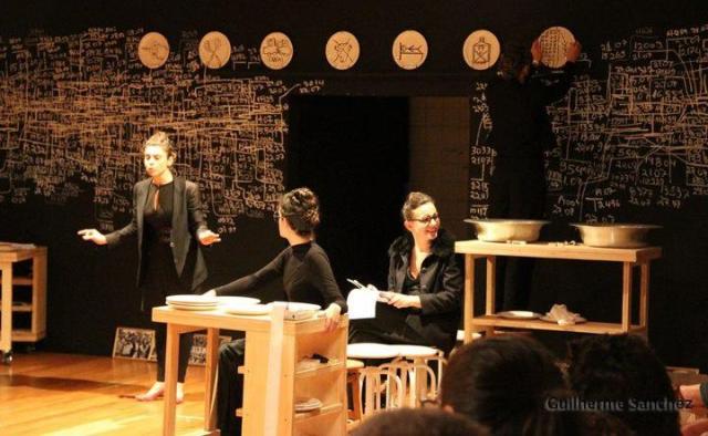 A pressa com que as atrizes recebem o público é o primeiro comando de uma encenação cadenciada nas falas, movimentos e sonoridades, de modo que replique o caos ordenado da passagem do tempo como é percebida por nós. Para que a interatividade almejada se instaure, o grupo seduz pouco a pouco o espectador a comprometer-se com o espetáculo, com sua história de vida e sua consciência do agora.