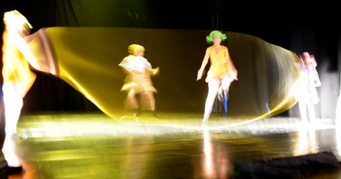 A criatividade na utilização de materiais simples é outro elemento potente no trabalho. Em cerca de uma hora, praticamente um único material é reelaborado permanentemente em cena, quando seria uma armadilha cair no esgotamento. A utilização de barracas para dar forma a seres que remetem a animais como aves e peixes segue a lógica do resto do espetáculo, com ideias simples, mas de grande efeito.