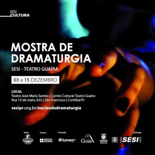 Na próxima semana, começa em Curitiba a segunda edição da Mostra de Dramaturgia Sesi – Teatro Guaíra, com 16 montagens escritas e dirigidas por integrantes das oficinas do Núcleo de Dramaturgia e de Encenação, orientadas por Roberto Alvim, Ruy Filho e Antonio Rogério Toscano. As apresentações serão de 3 a 15 de dezembro, no Teatro José Maria Santos, com entrada gratuita. Veja a programação.