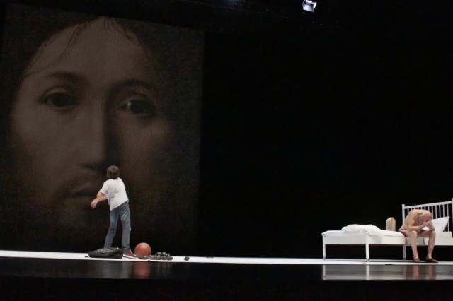 O espetáculo que abriu a programação da MIT, Sobre o conceito de rosto no filho de Deus, de Romeo Castellucci, oferece uma ampla gama de chaves de leitura. Elaborar um texto crítico propositivo sobre esta obra – em poucas horas e em um espaço reduzido – demanda uma escolha radical. Diante da complexa trama de possibilidades que se abre diante do espectador, a proposta deste breve exercício de reflexão é puxar um único fio e apontar um caminho possível de reflexão sobre a peça, sem a intenção de esgotá-lo. Trato feito, puxamos o fio: pensar a presença do rosto de Cristo no fundo do palco como a construção de uma imagem dialética e como o espetáculo opera, com isso, uma proposição ética que nos fisga para dentro da obra. Por imagem dialética, entendo o conceito elaborado por Georges Didi-Huberman a partir de Walter Benjamim em livros como O que vemos, o que nos olha e Ouvrir Vénus. O que nos convida a trazer à tona um conceito para esta tentativa de diálogo com a obra é o próprio título, uma proposição teórica estranhamente elaborada. Pelo título, a peça nos diz que o que está em jogo não é uma trama nem um tema, mas um conceito. Assim, nos propomos a jogar com cartas do mesmo baralho.