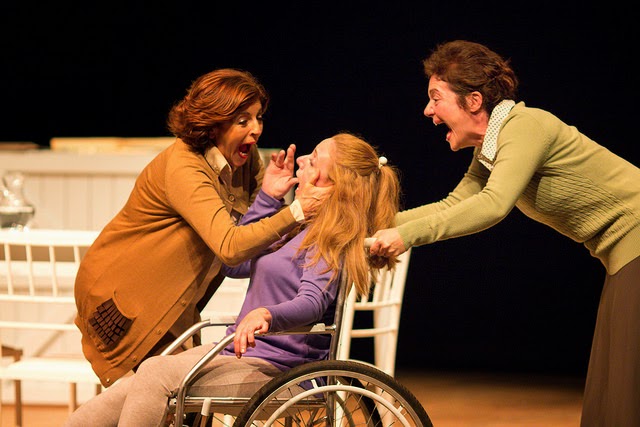 Esse procedimento teatral de Veronese parece sublinhar a construção psicológica do conflito entre mãe e filha, que não se viam há mais de 7 anos e cujo reencontro faz explodir uma série de questões reprimidas, silenciadas, amargadas. É como se neutralizasse o que é externo aos personagens-atores, opacizando o espaço, para lançar o foco sobre o que se passa no interior daquelas mentes e corpos. Nem mesmo a legenda em português, insistindo em adiantar os pensamentos e os diálogos, retira a força emocional que se estabelece das relações em cena.