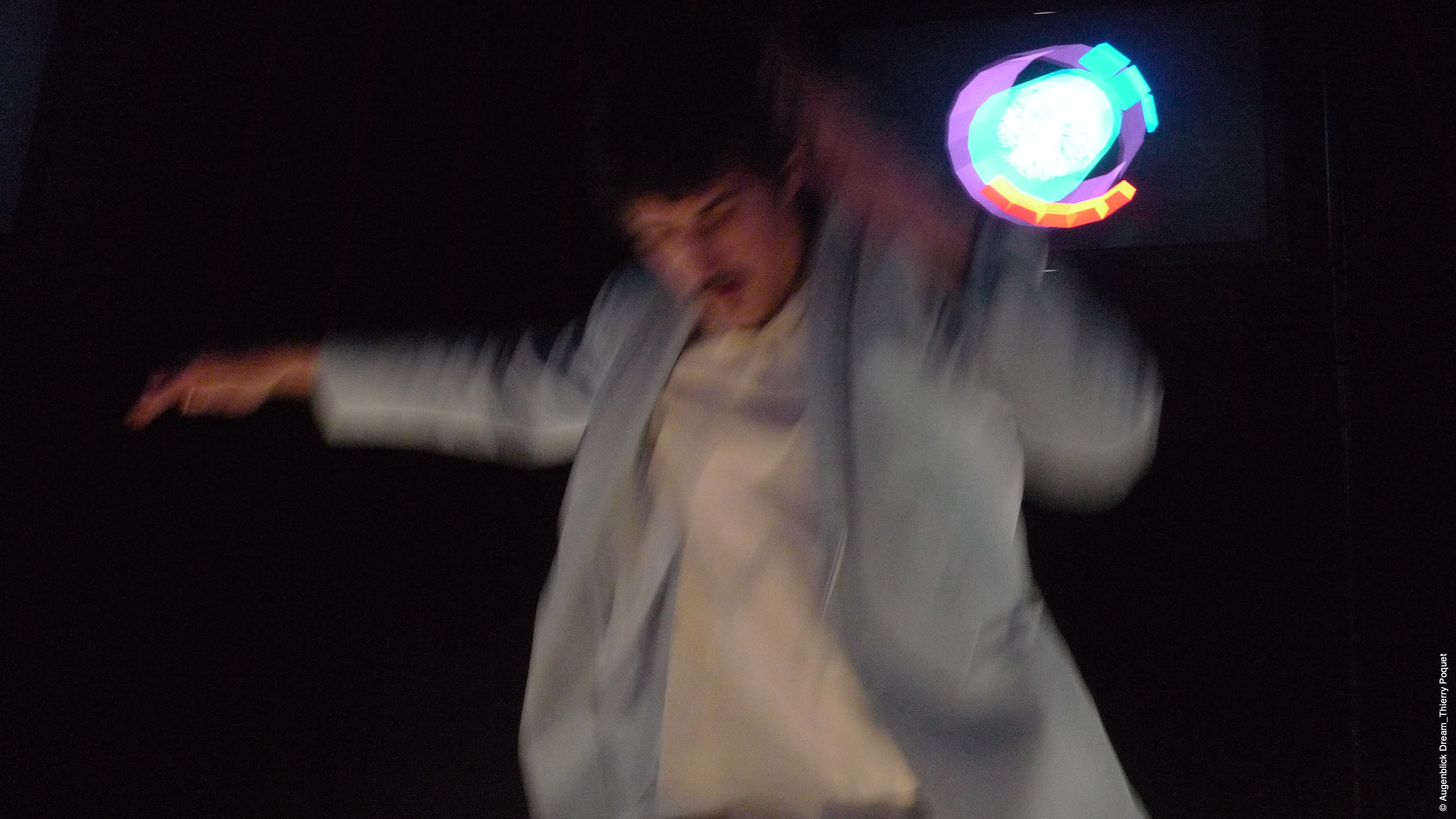 Ao fim da apresentação, um dos franceses explica ao público a camada científica que se perdeu no desencontro entre as línguas, e que se refere à busca humana por produzir artificialmente a antimatéria. Aos espectadores, resta tentar reconfigurar o que viu a partir do resumo posterior.