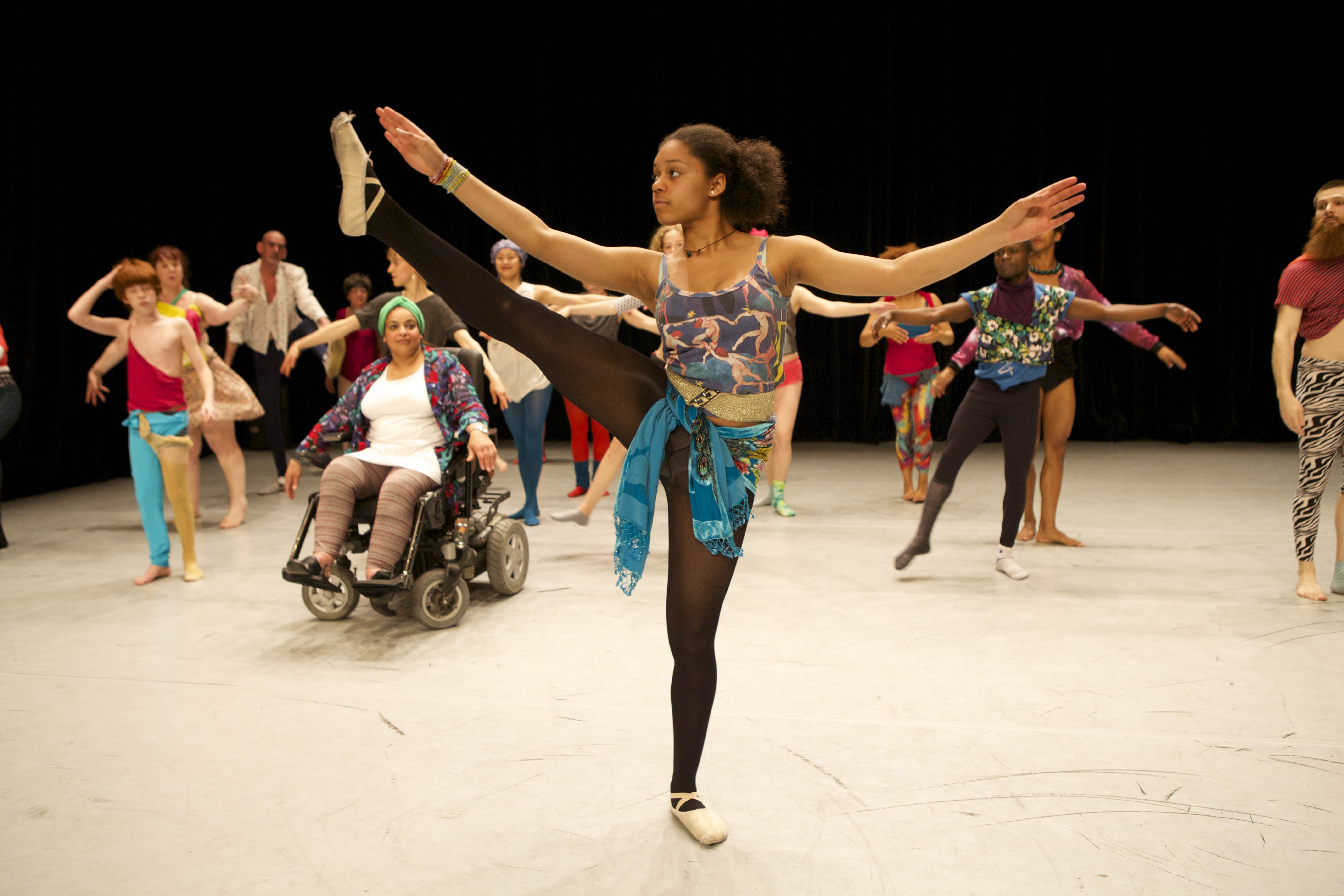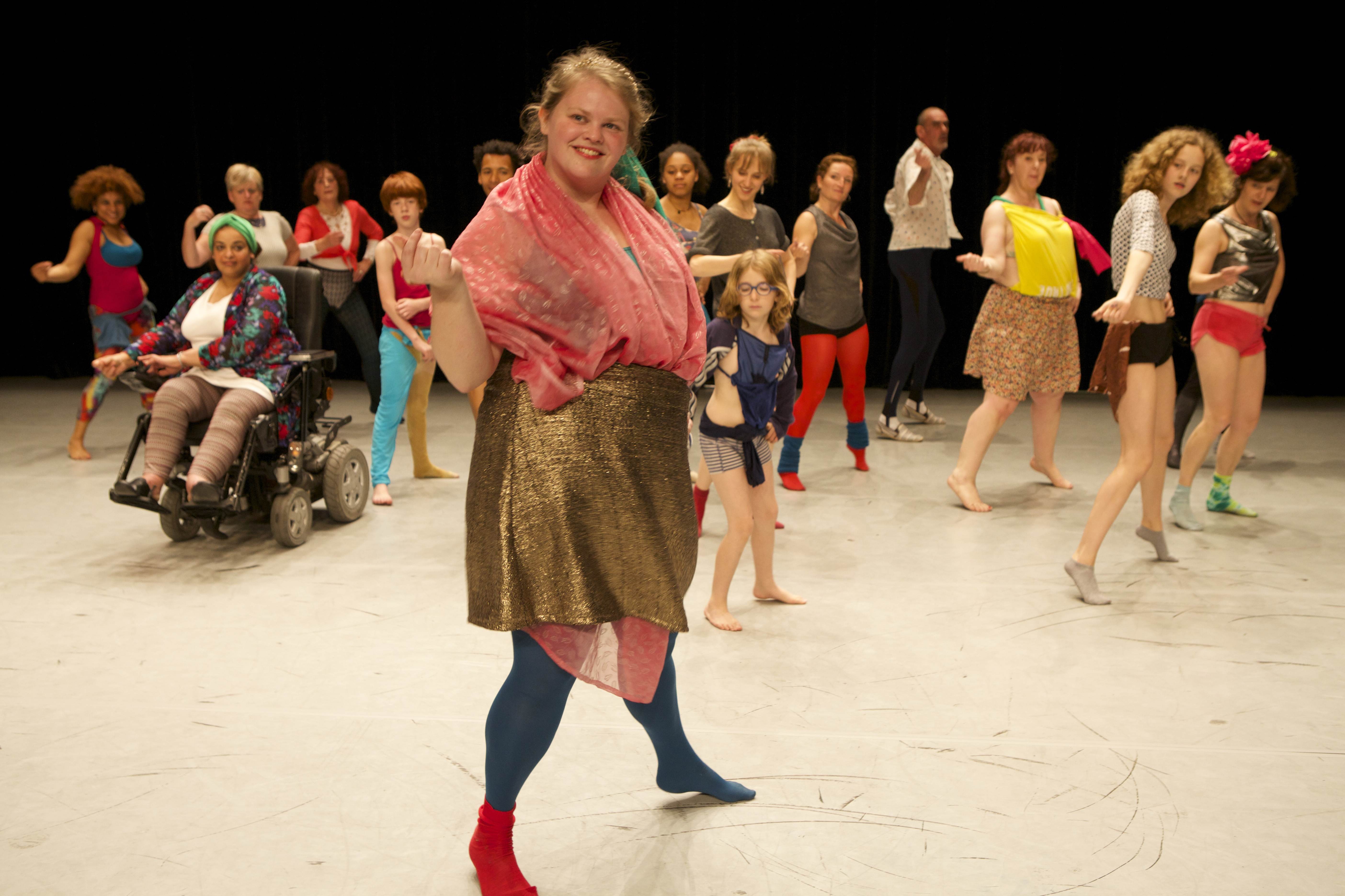 É um mecanismo semelhante que aparece nas cenas seguintes. A partir de palavras escritas em um bloco de notas disposto na parte da frente do palco, onde se lê uma sucessão de estilos ou referências de dança (balé, valsa, “Michael Jackson”…), um a um, os participantes executam algum movimento emblemático daquele estilo (o Grand Jeté, por exemplo). Já na segunda parte do trabalho, alguns dos bailarinos realizam coreografias criadas por eles próprios (entre esses, uma criança e uma cadeirante) enquanto os outros tentam copiar os passos.